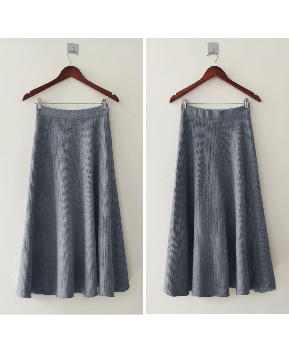 裾に向かって優雅に広がるニットフレアスカート。