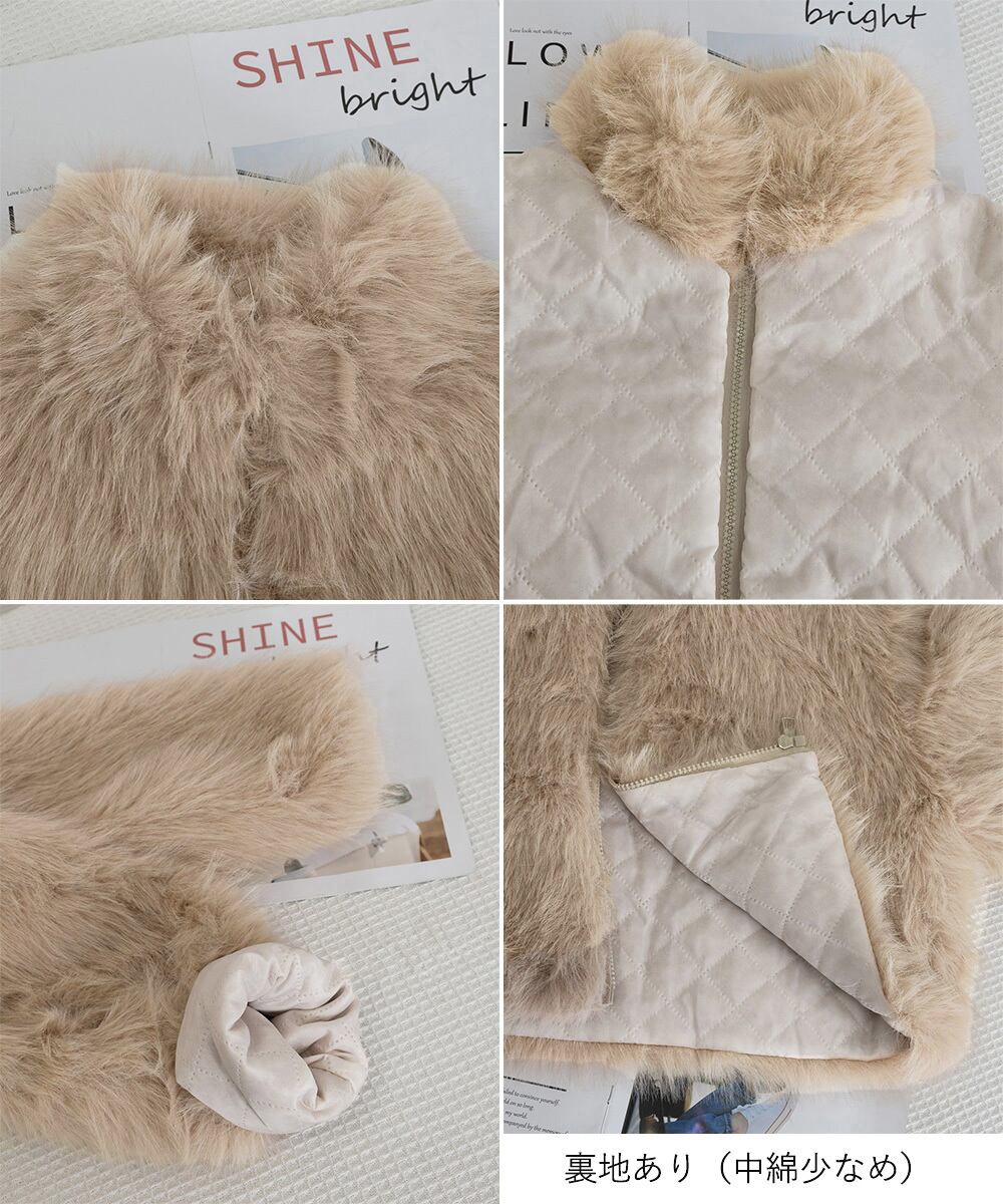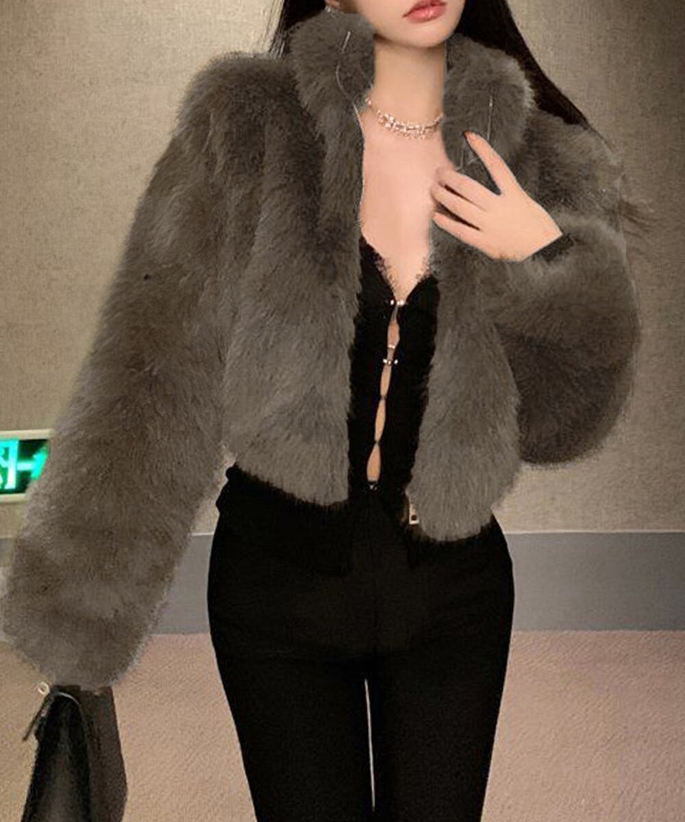 上質なフェイクファーを使用した、ショート丈のスタンドカラージャケット。
