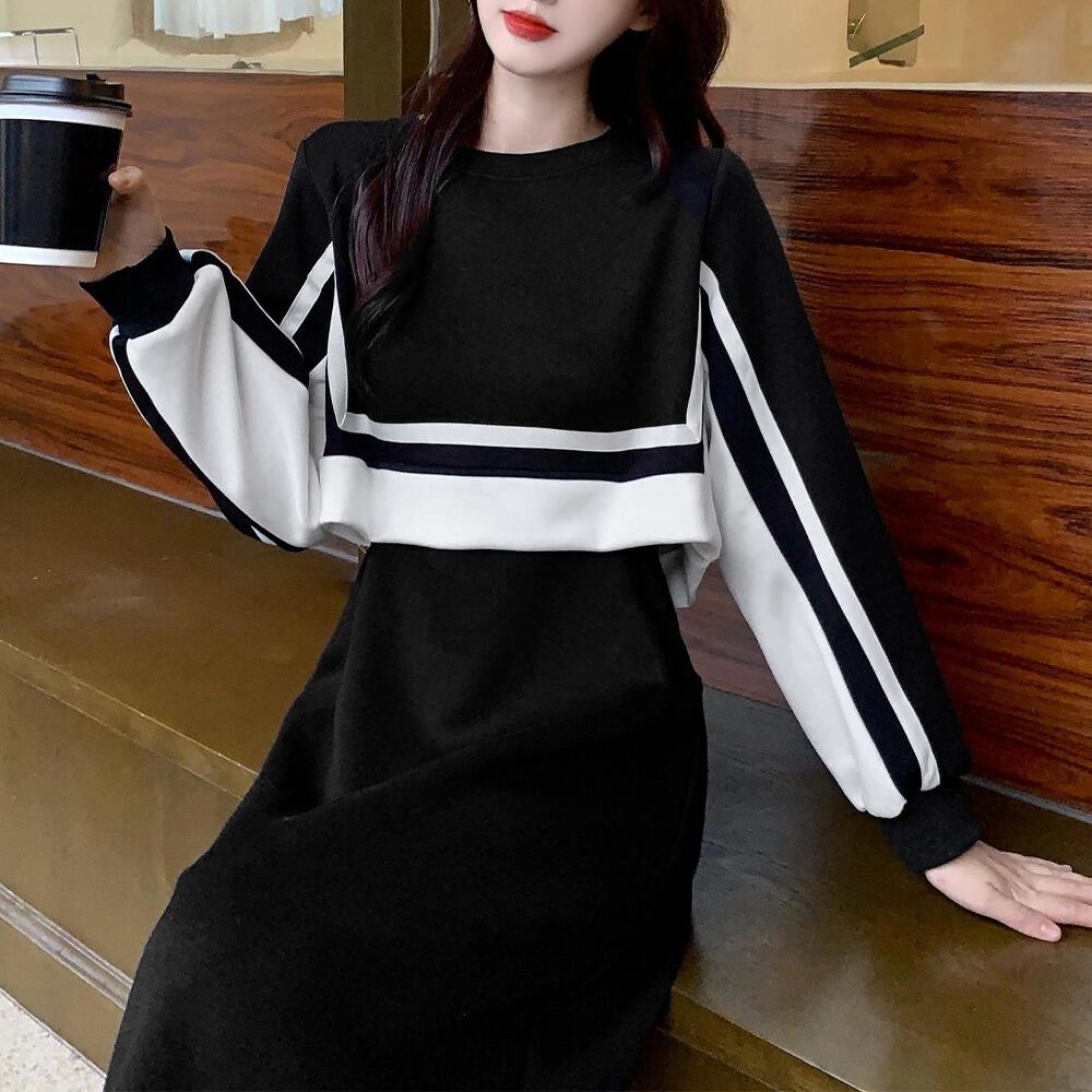 セットアップ風ワンピース 長袖 韓国秋冬