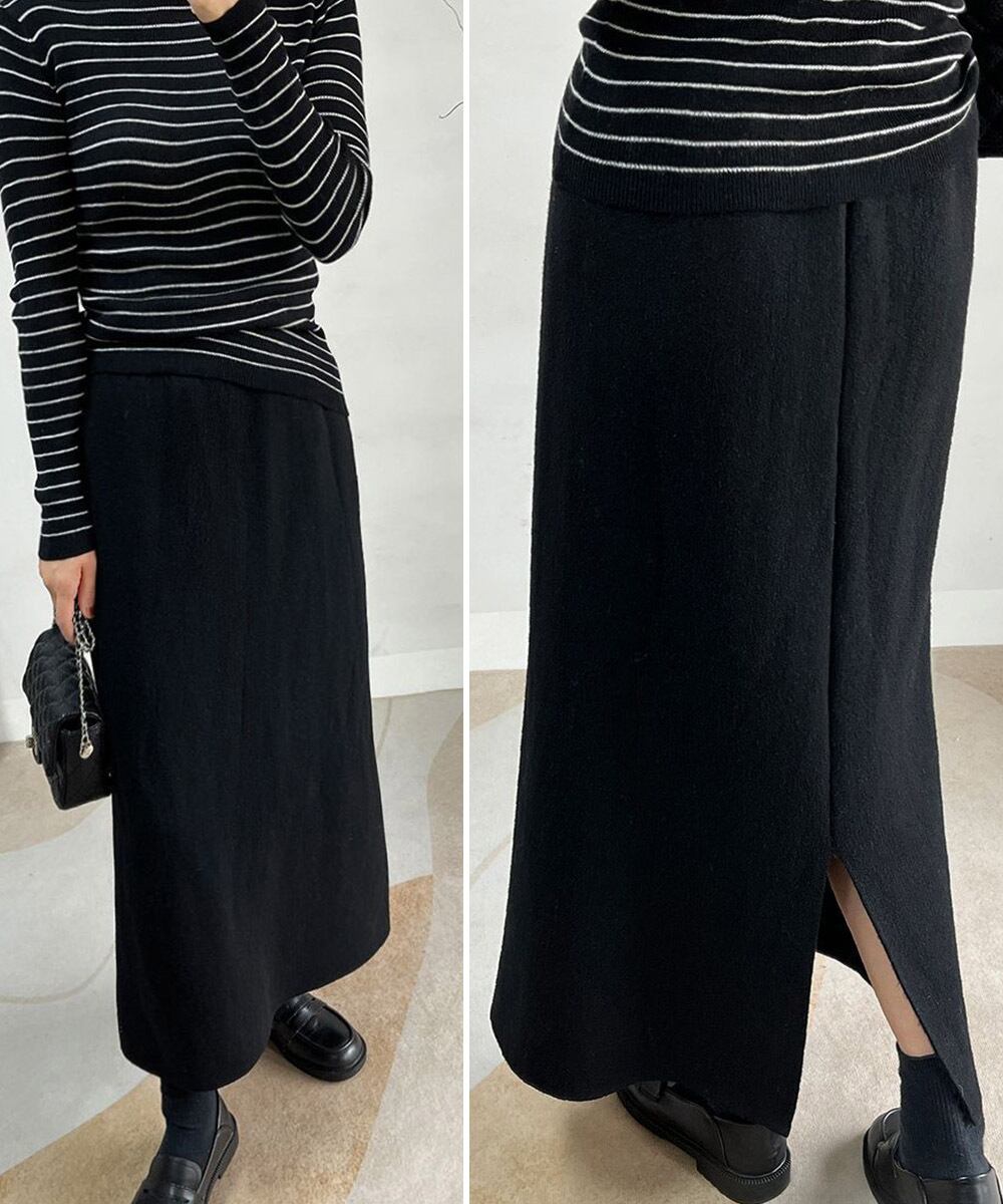 裏起毛仕様で暖かく、冬にぴったりな厚手ニットタイトスカート。