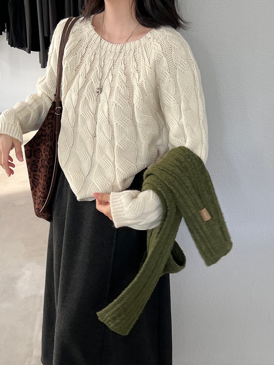 トップス レディース ニット カットソー セーター 4色 長袖 韓国風 2025秋冬新作