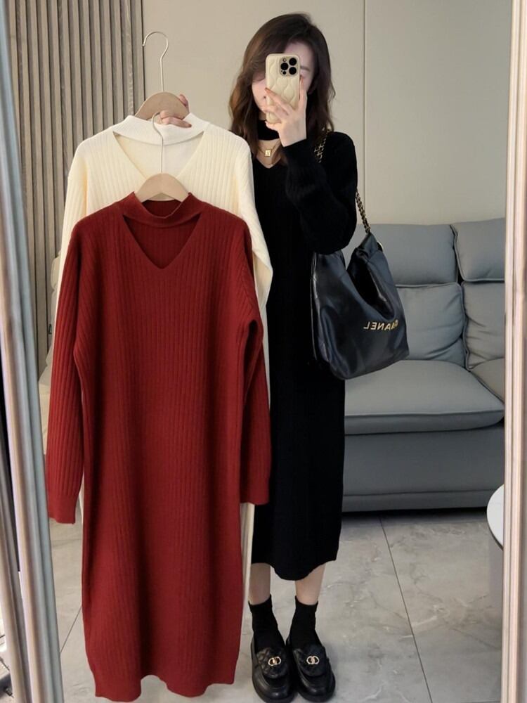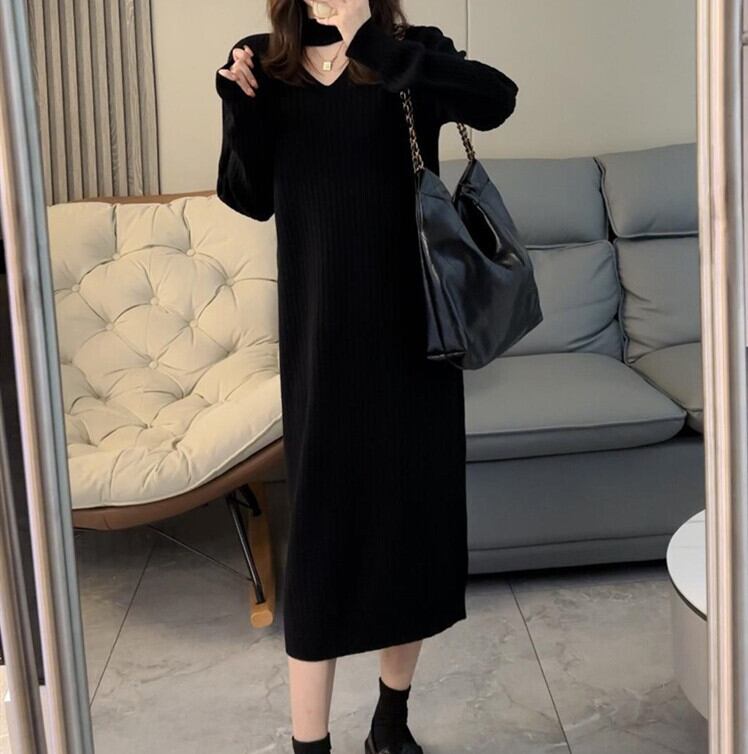 ワンピース ニットワンピース ニット レディース ロング丈ワンピース 秋冬 vネック 長袖