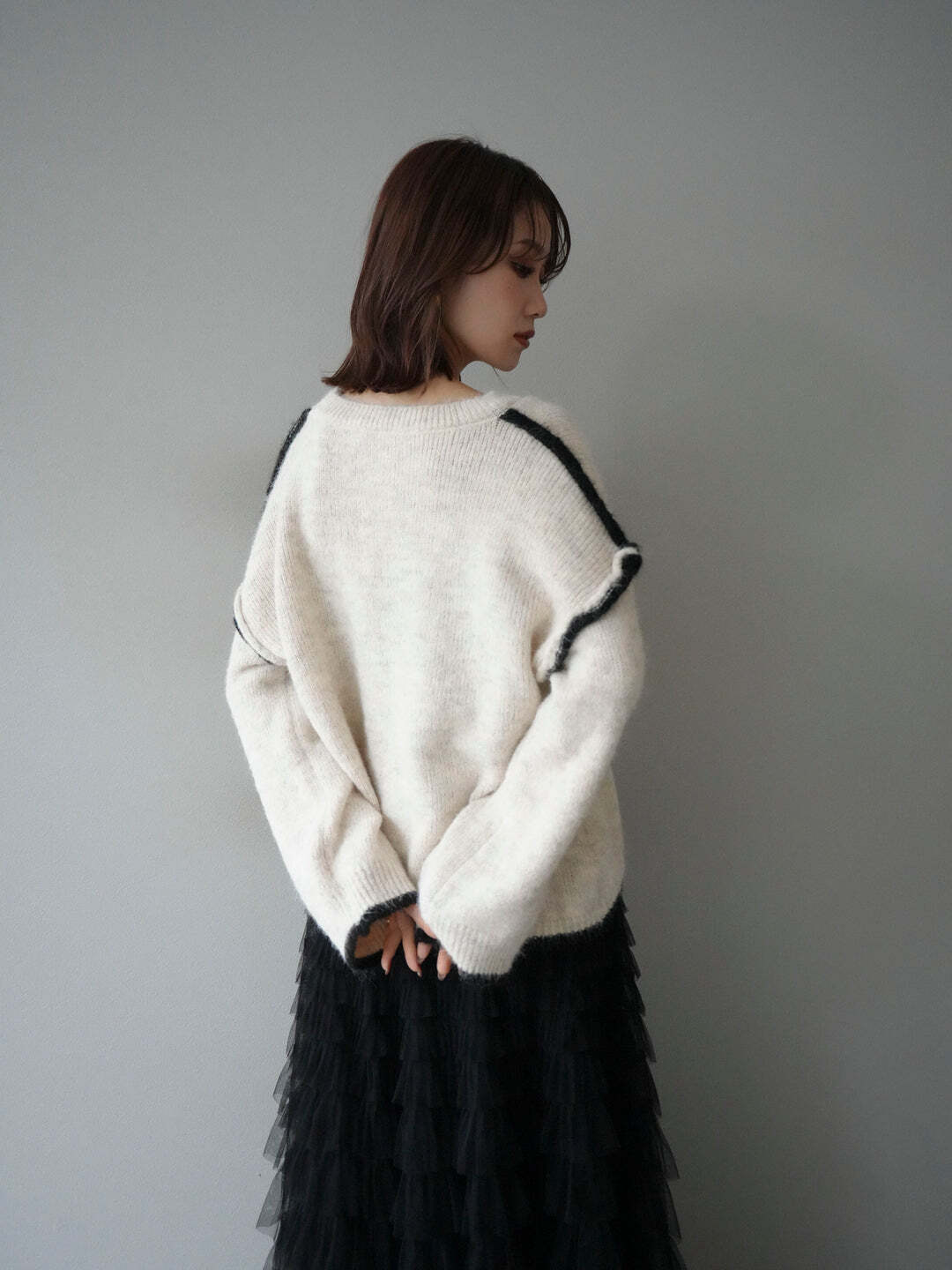 オシャレクルーネックニットセーター レディース 2色