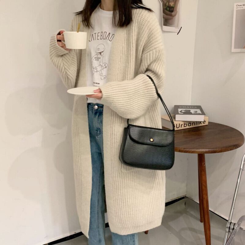 リラックススタイルから通勤スタイルまで使える、優秀なロングニットカーディガン。
