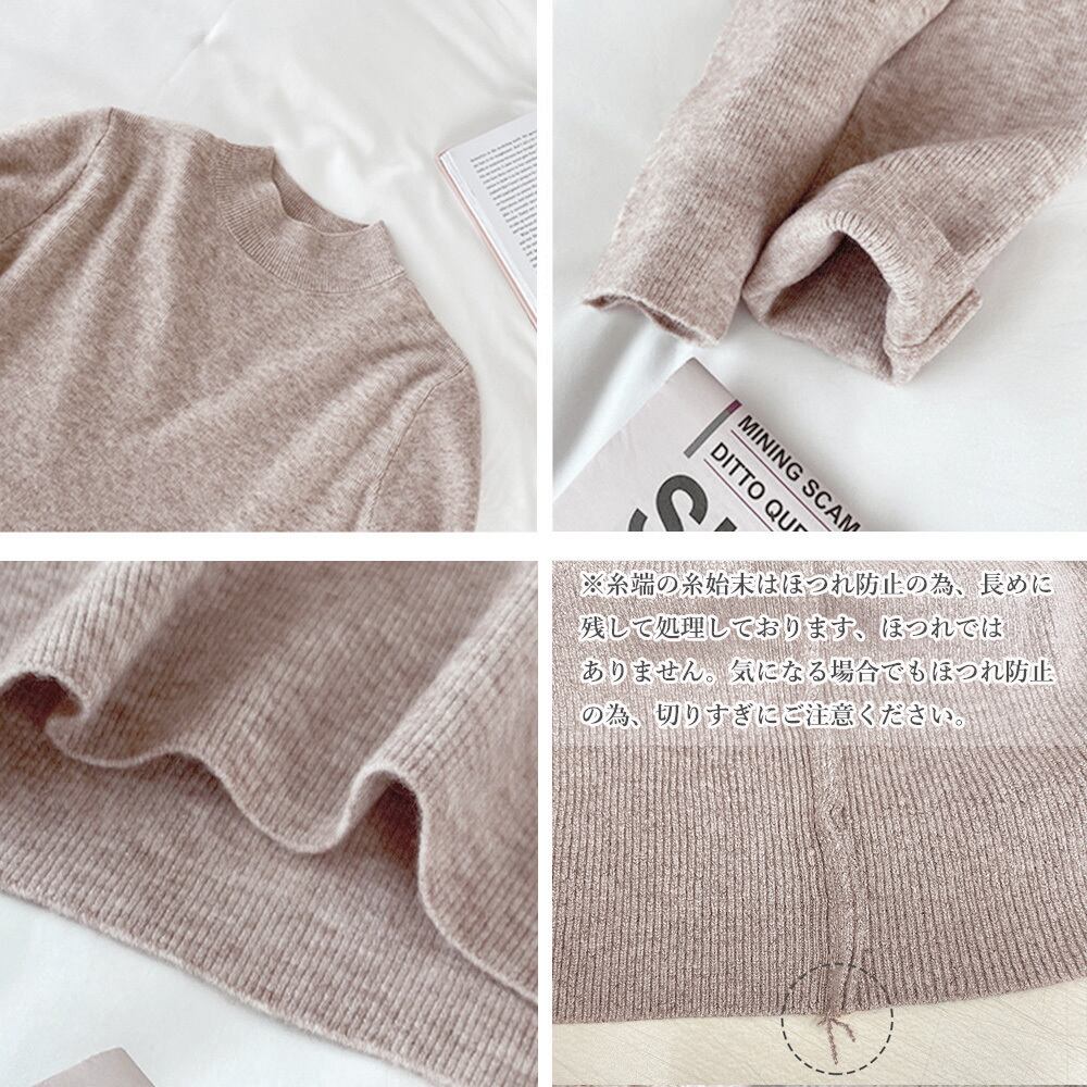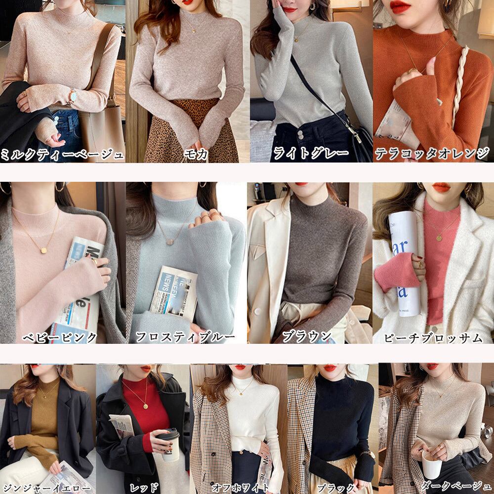 プチハイネック 長袖 薄手セーター カシミヤ風 韓国ファッション 無地 ニットインナー ハーフネック ニットソー