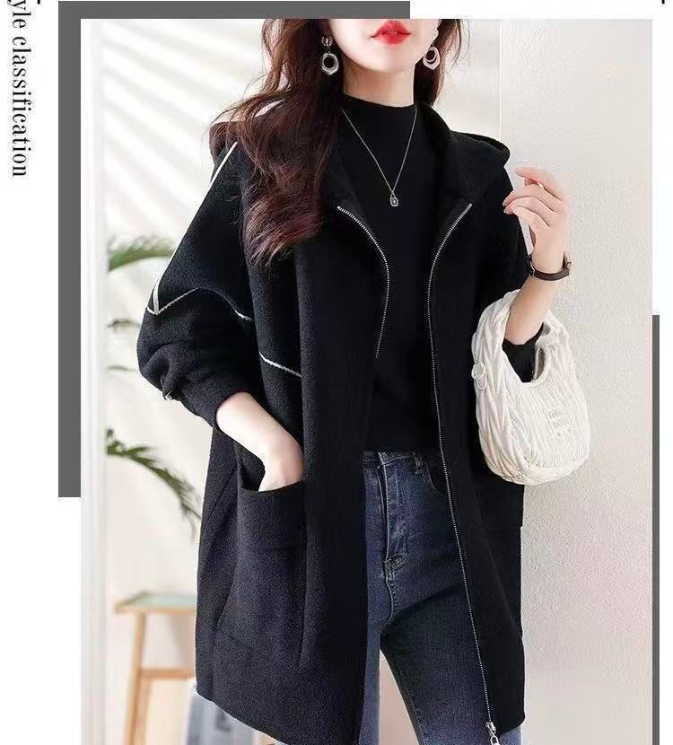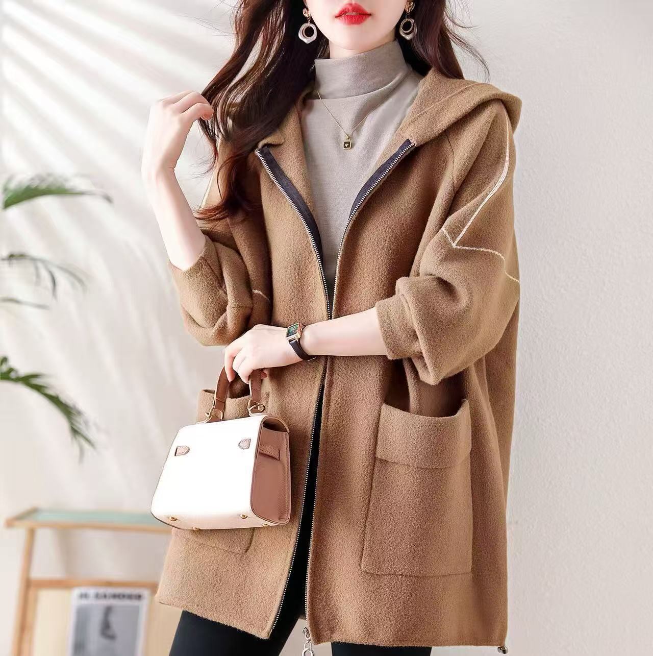 カジュアルフード付きファスナー式コート レディースファッション人気アウター