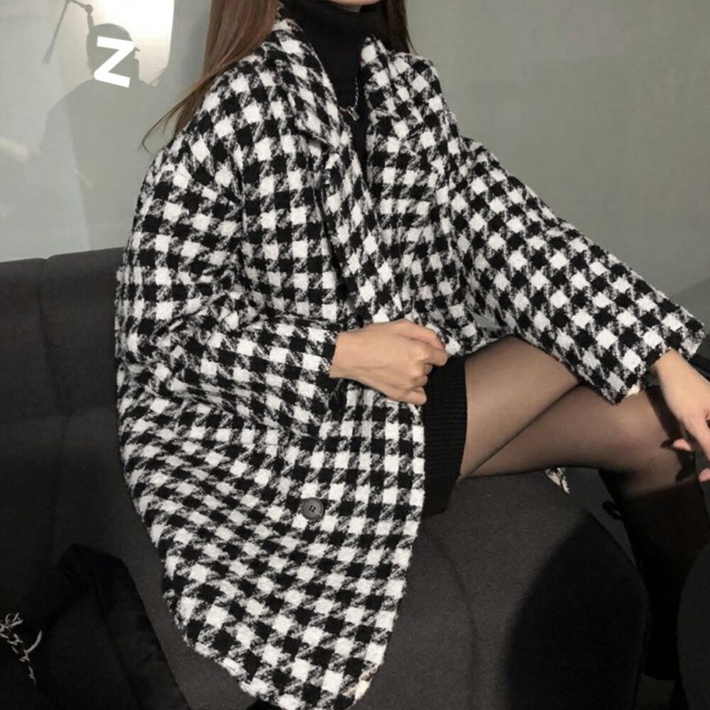 大ぶりの千鳥格子柄がクラシカルな味わいを感じさせるテーラードジャケットコート