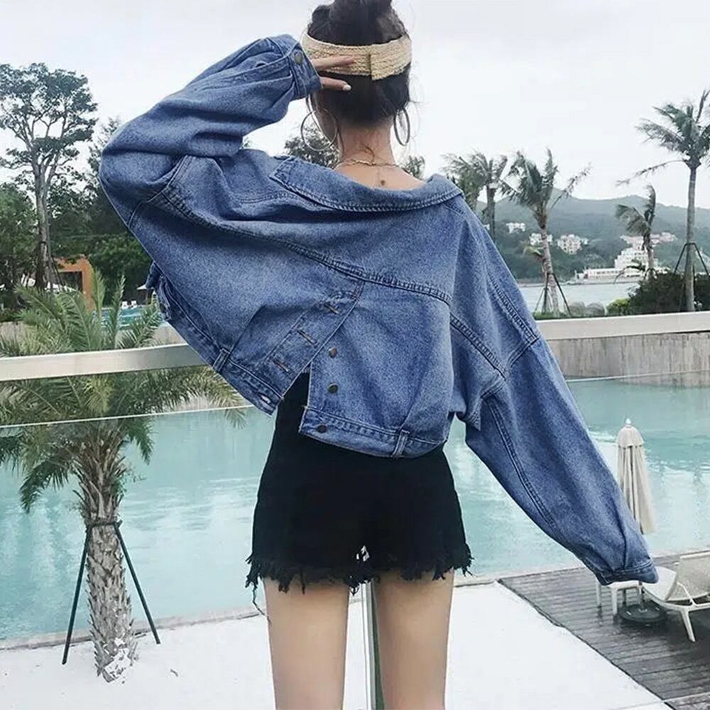 ドロップショルダー ライトアウター 秋 ミニ丈デニム羽織り