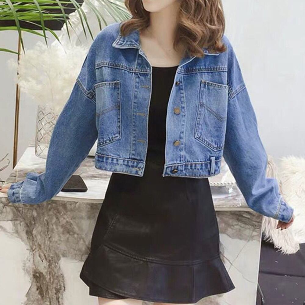レディース カジュアル クロップド丈デニムコート 着やせGジャン 韓国風長袖 デニムブルゾン ジャンパー 上着 おしゃれ