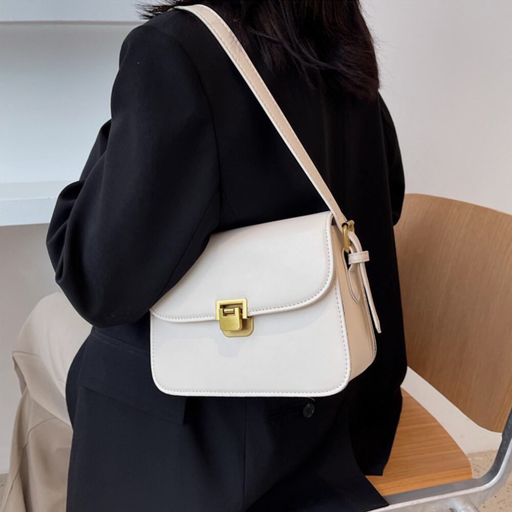 飽きのこないシンプルなデザインなのにどこかヴィンテージな雰囲気を感じられるスクエアショルダーバッグ
