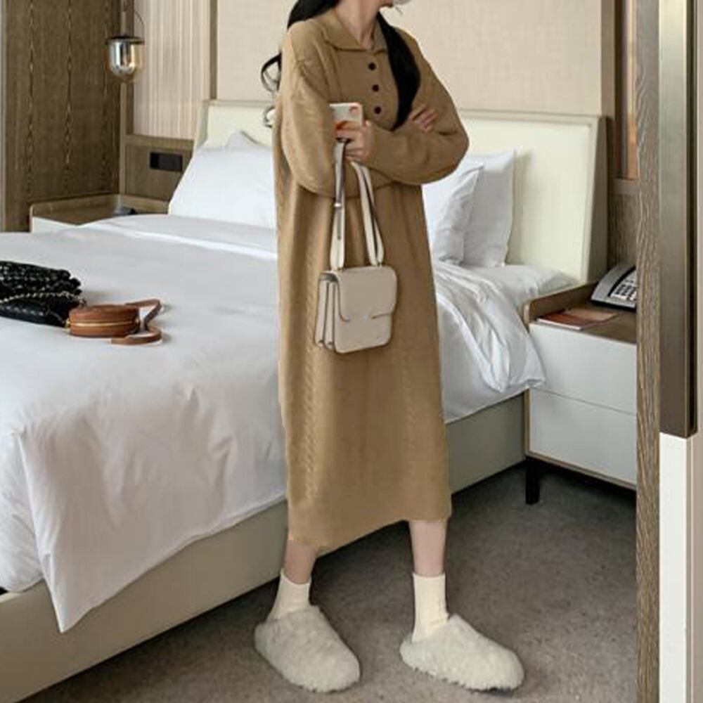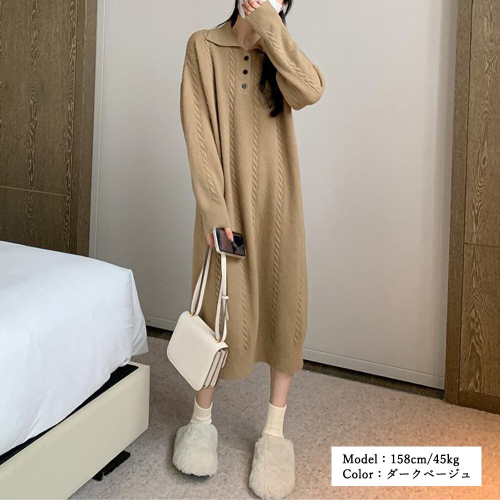 ケーブル編み ニットワンピース 韓国秋冬