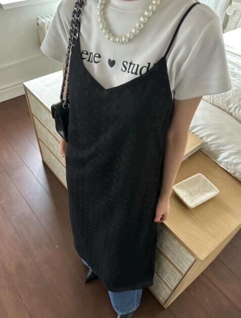 このワンピースキャミソールは、繊細なレース素材とシースルーのデザインが特徴です。軽やかでエレガントな印象を与え、特別な日のコーディネートにもぴったりです。レースの透け感が女性らしさを引き立ててくれるので、さまざまなスタイルに合わせやすく、重ね着に最適です。