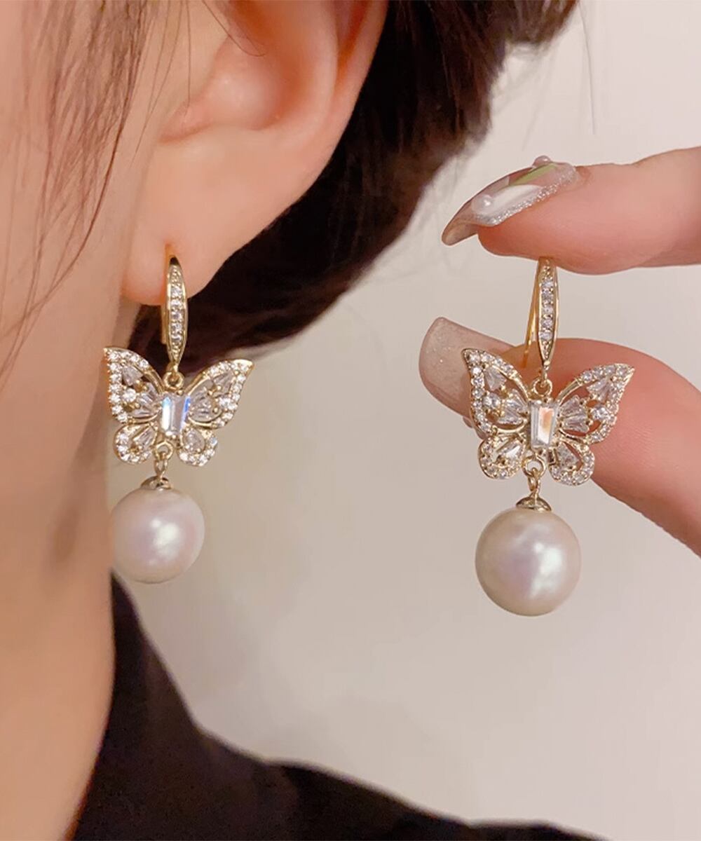 華やかな蝶々モチーフに、上品なパールを組み合わせたエレガントなピアス