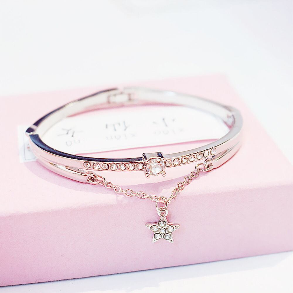 ラインストーンの贅沢な輝きを放つ星モチーフのバングル
