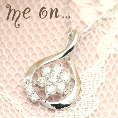 【me on...】K10ホワイトゴールド・ドロップ×フラワーモチーフ・ダイヤモンドネックレス