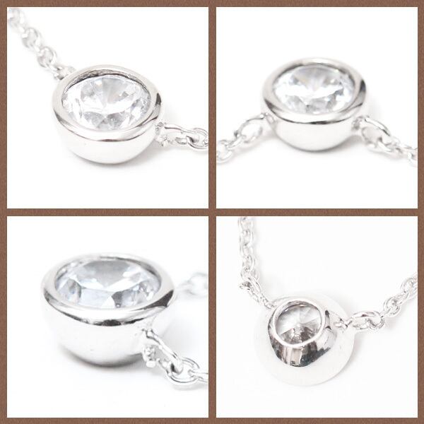 【me on...】K10ホワイトゴールド・直径5mm(0.3ct)のキュービックジルコニア・シンプルネックレス