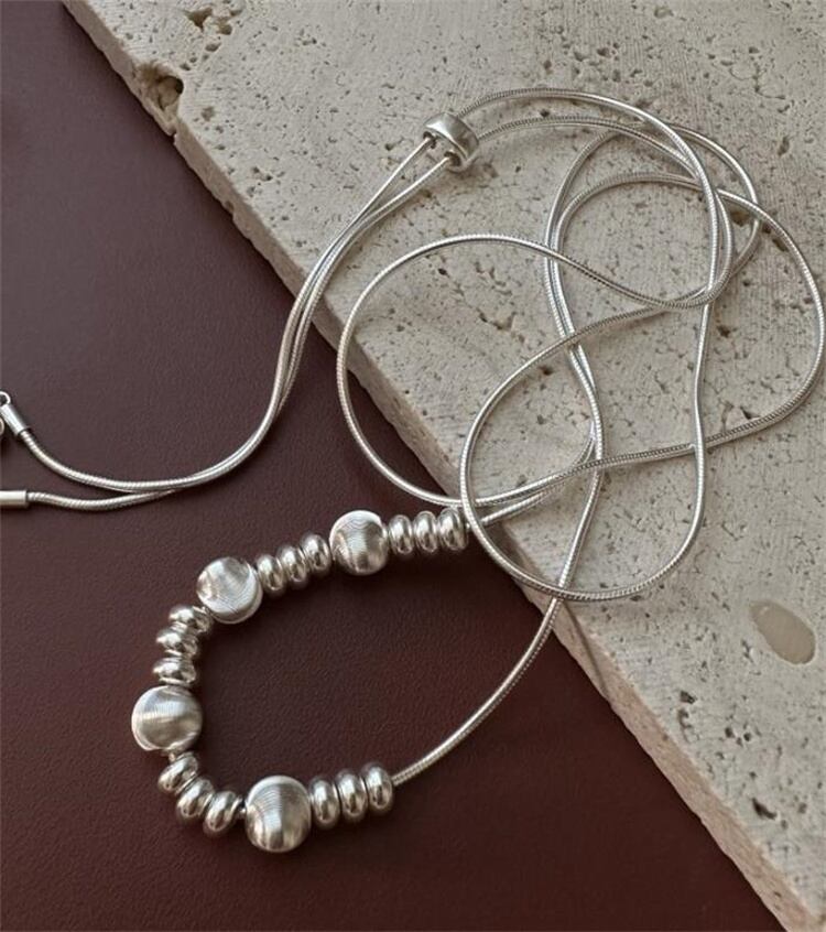 猫目石ビーズ スライド調節ネックレス スネークチェーン 秋冬コーデ用 ロングアクセサリー