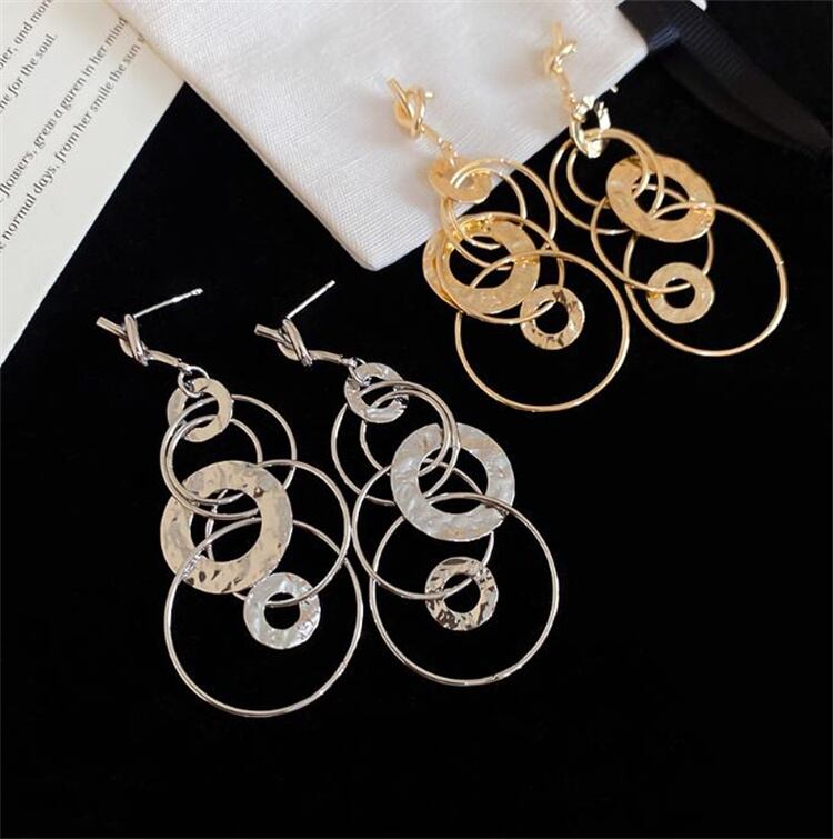 結び目丸カフスフリンジピアス ラグジュアリー調 ロングタイプ 誇張