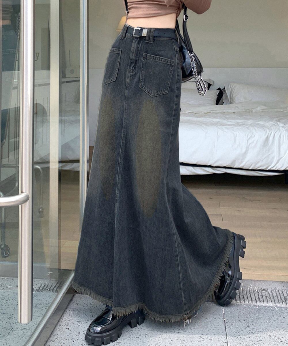 フリンジデニムスカートマーメイドスカート