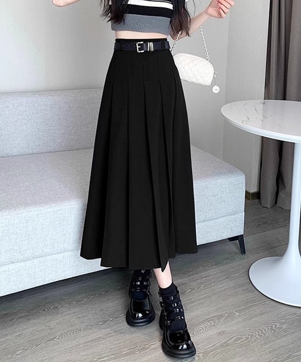 プリーツスカート ベルト付き 韓国風