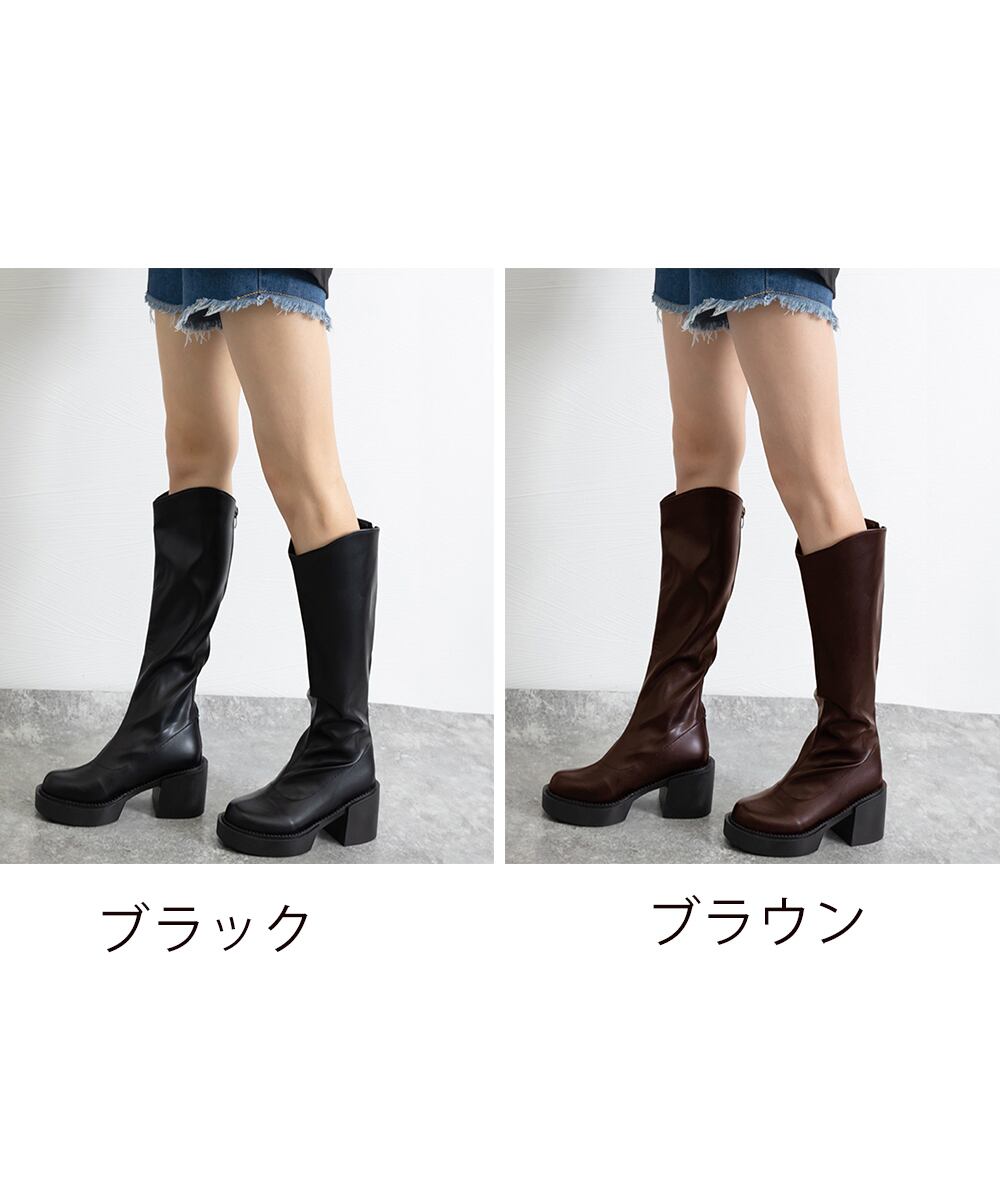 ロングブーツ 厚底 ジョッキーブーツ韓国