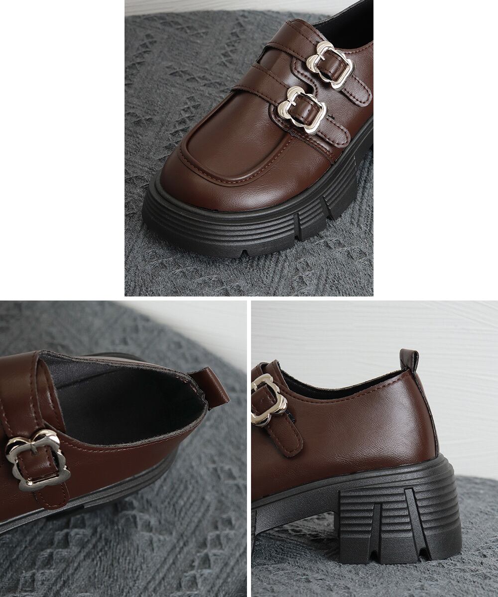レザー調 ストラップ ボリュームソール 疲れない 快適 太ヒール 歩きやすい クラシック オルチャン 通勤通学 メイド靴
