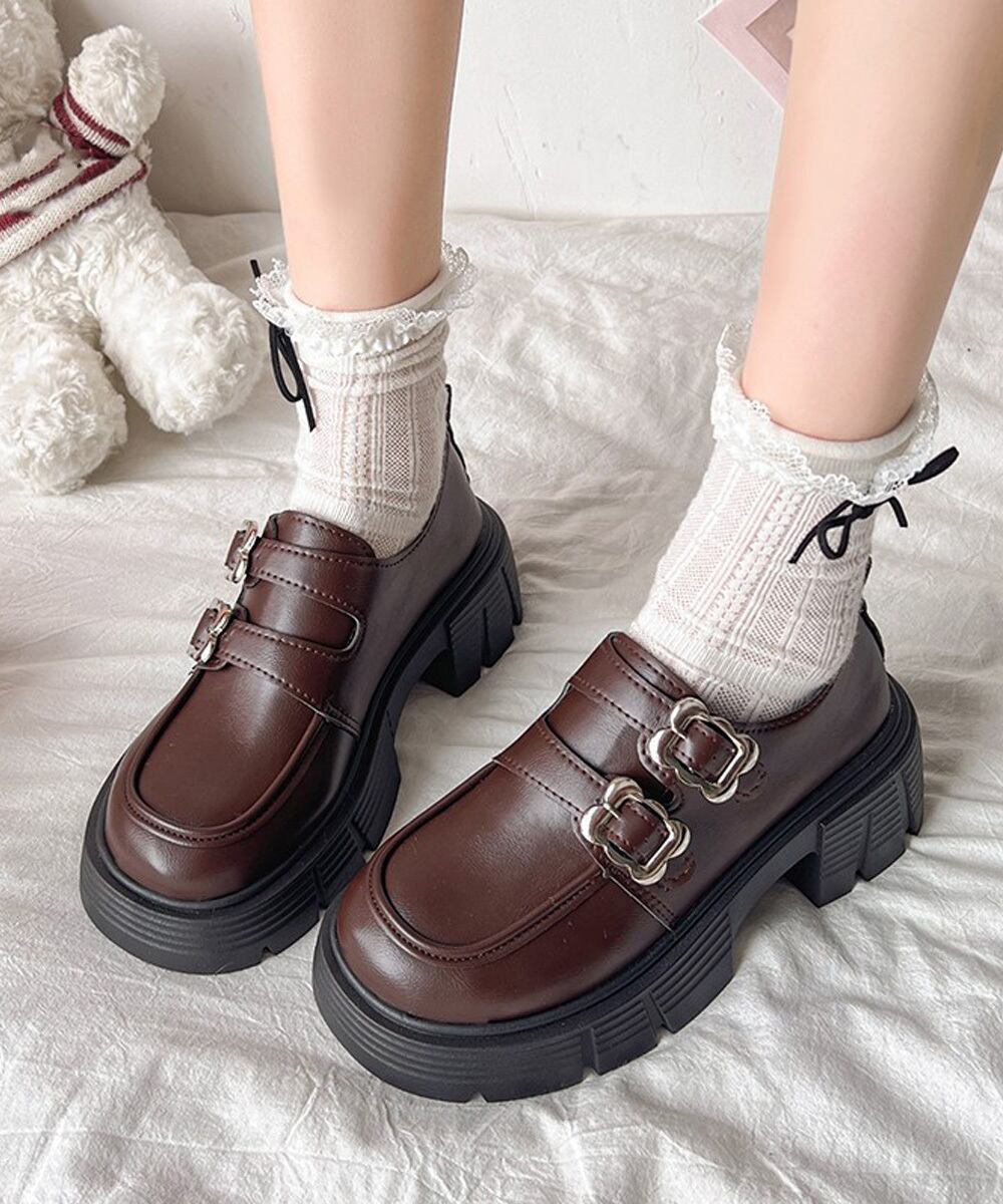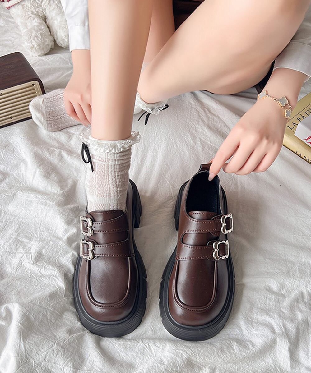 レトロ風ローファー 新作走れるパンプス 疲れにくい 厚底靴