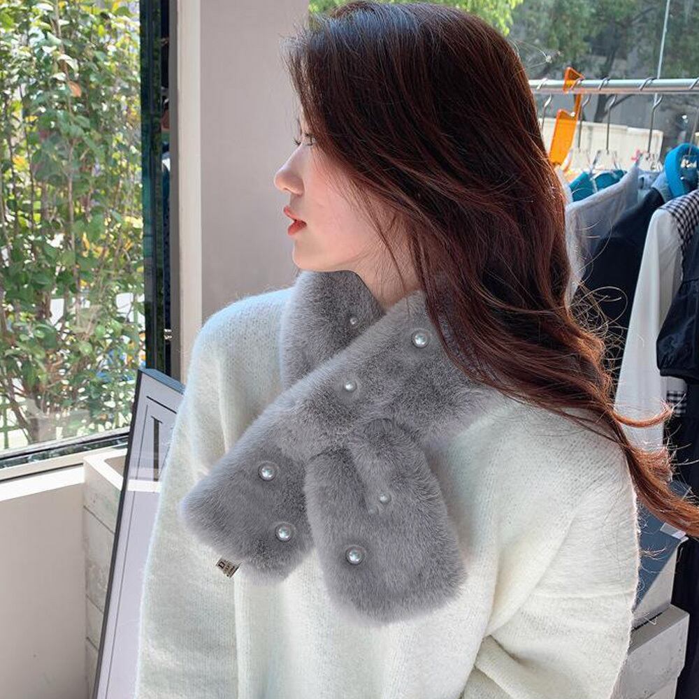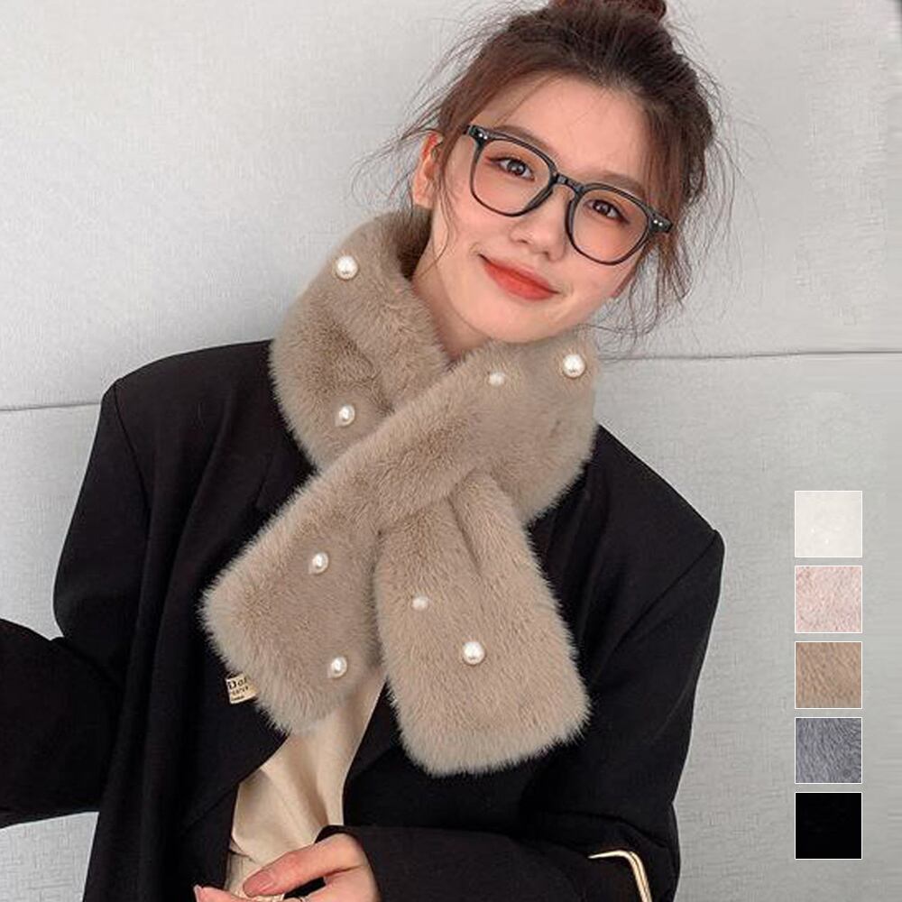 レディース 韓国 パール付ティペット シンプル フェミニン 巻き物 通勤通学 オフィス おやれ あったか 可愛い 上品