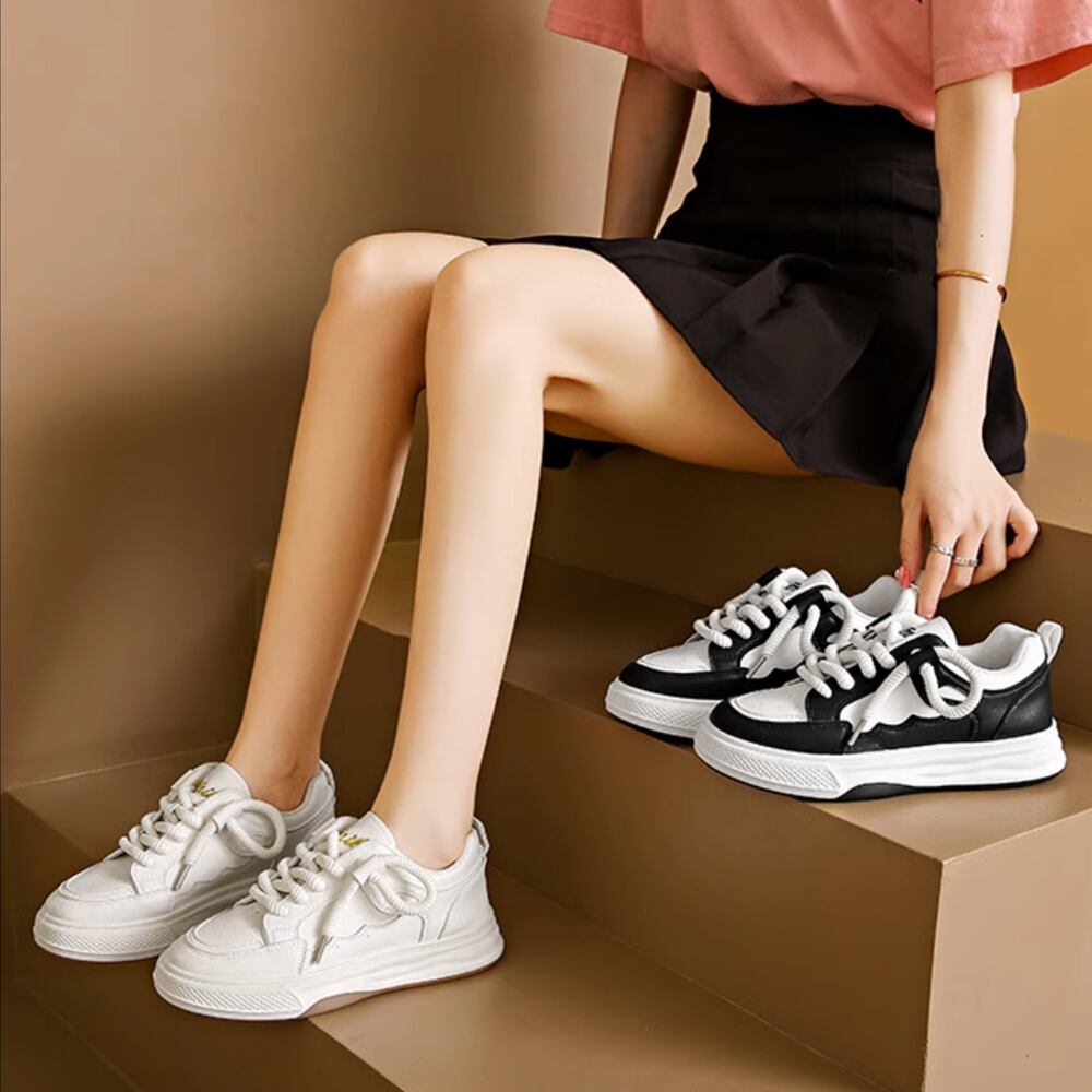 履きやすいシューズ 通勤通学 韓国ファッション おしゃれ 美脚スニーカー レースアップ カジュアルPUレザー 可愛い太紐