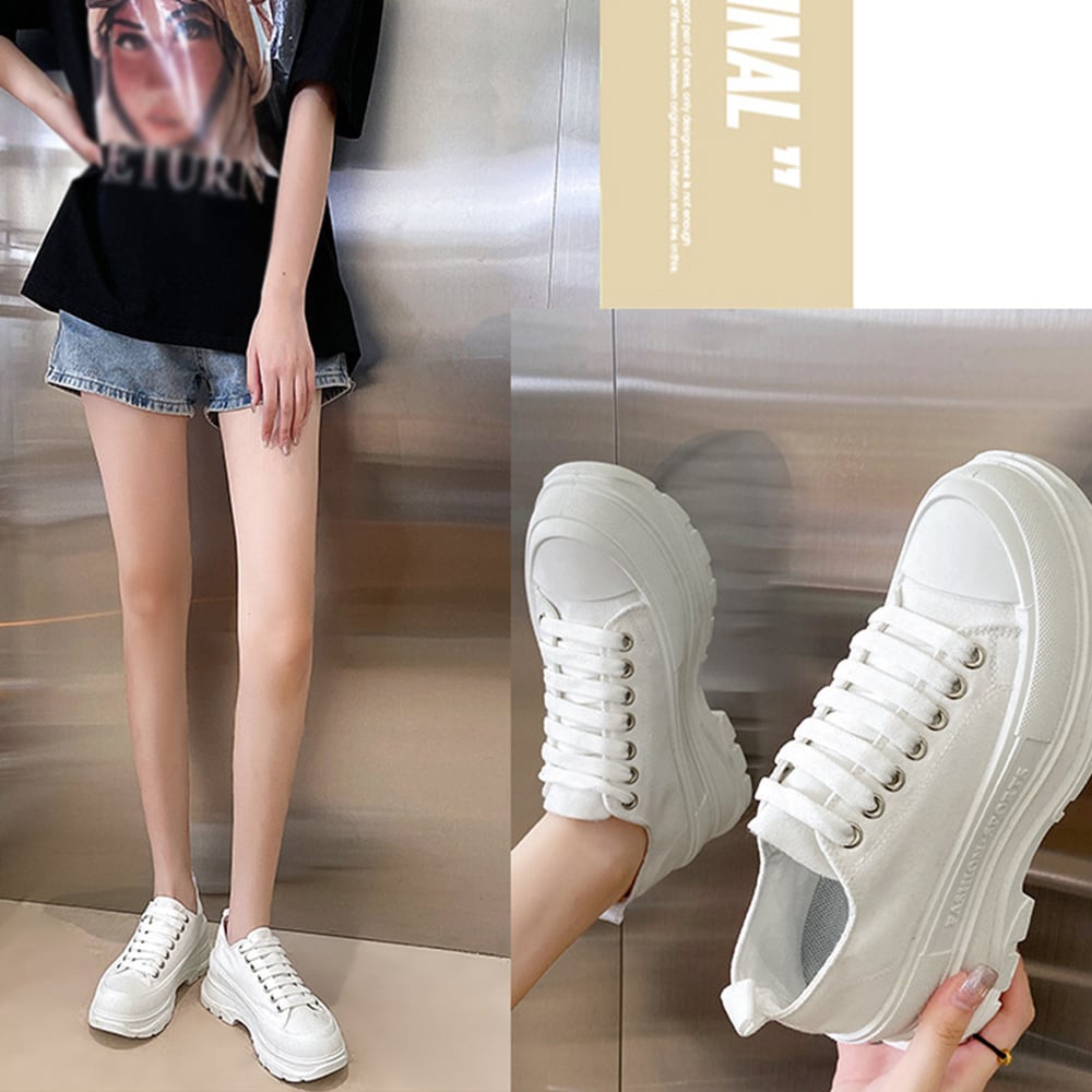 さりげなくスタイルアップする厚底キャンバススニーカー