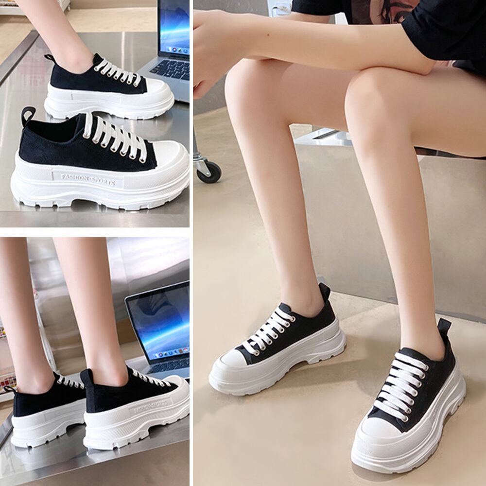 レディース ローカット 韓国ファッション 靴 履きやすい ボリュームシューズ レースアップ カジュアル 美脚くつ春秋夏