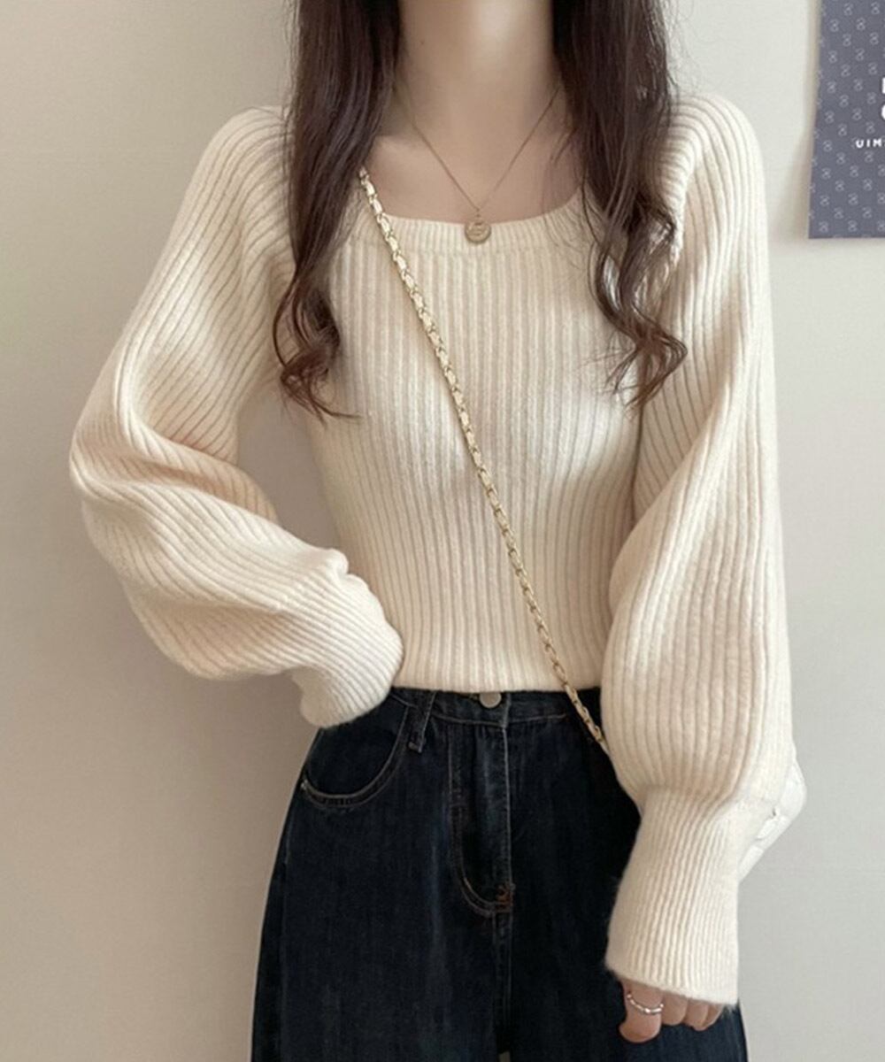 柔らかな肌触りのニット素材を使用したニットトップス。